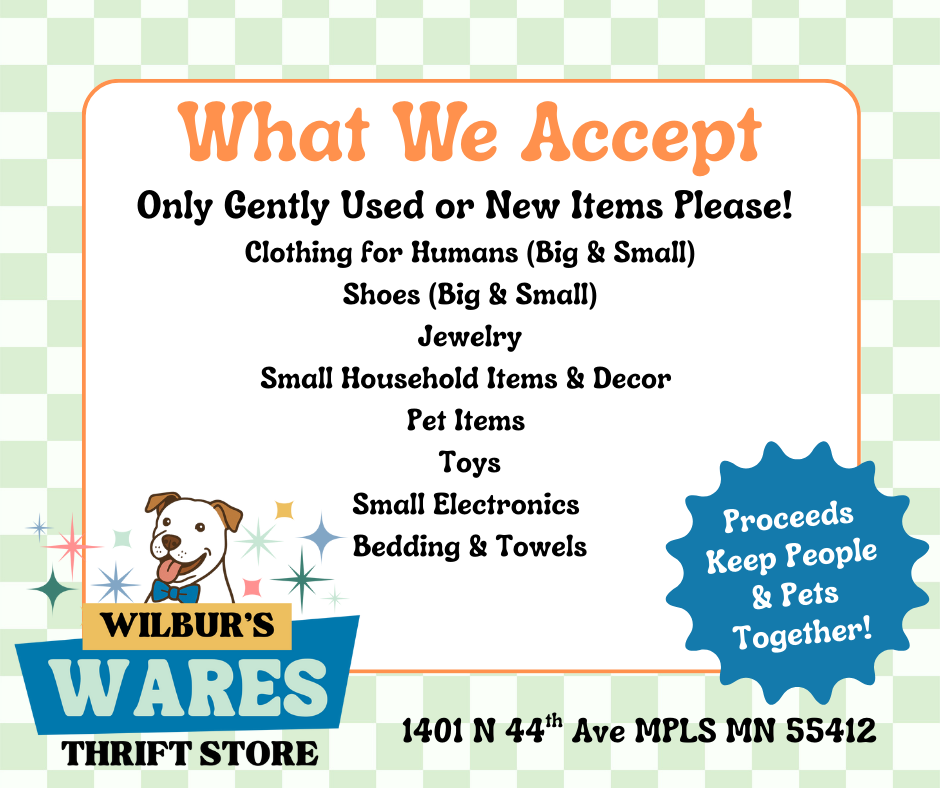 Wilbur’s Wares is a community-focused thrift store offering treasures for both ends of the leash—people and pets alike. From gently used clothing and household items to pet supplies, every purchase helps fund programs that keep families together.